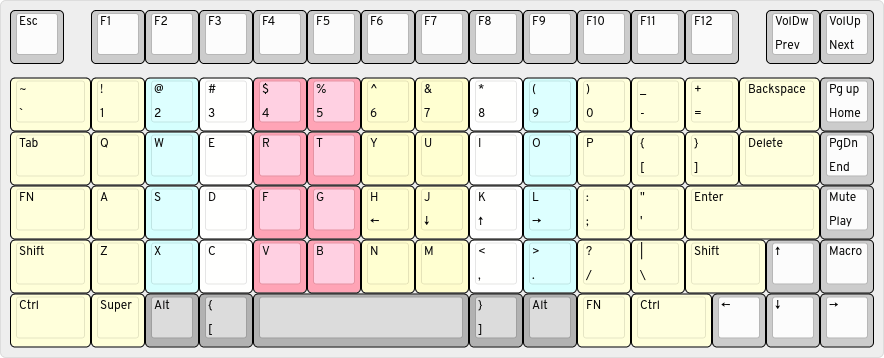 Since those keys are bigger, I usually hit them with my ring finger and therefore I don’t find their position as problematic. For the same reason I also didn’t move the keys on the left side (Tab, FN, Left Shift, Control).